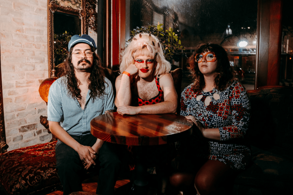 Patricia’s form of drag is unique, in the punk haus of Jayne County and the Cockettes, not necessarily eschewing glamor and femininity, but blending the masculine energy of rock and roll with something stranger. It’s something that I respect as a genderfluid person and it’s a bold choice of expression that has already cost the band a TV spot in the conservative Texan media landscape.